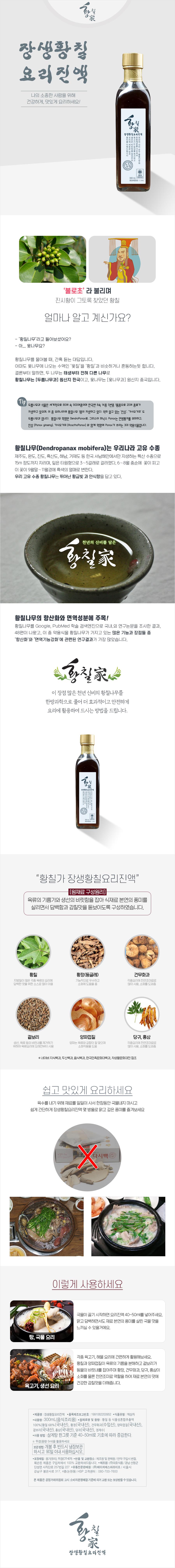 ※ 황칠요리진액은 방부제, 합성성분이 들어있지 않으니 냉장 보관부탁드립니다.